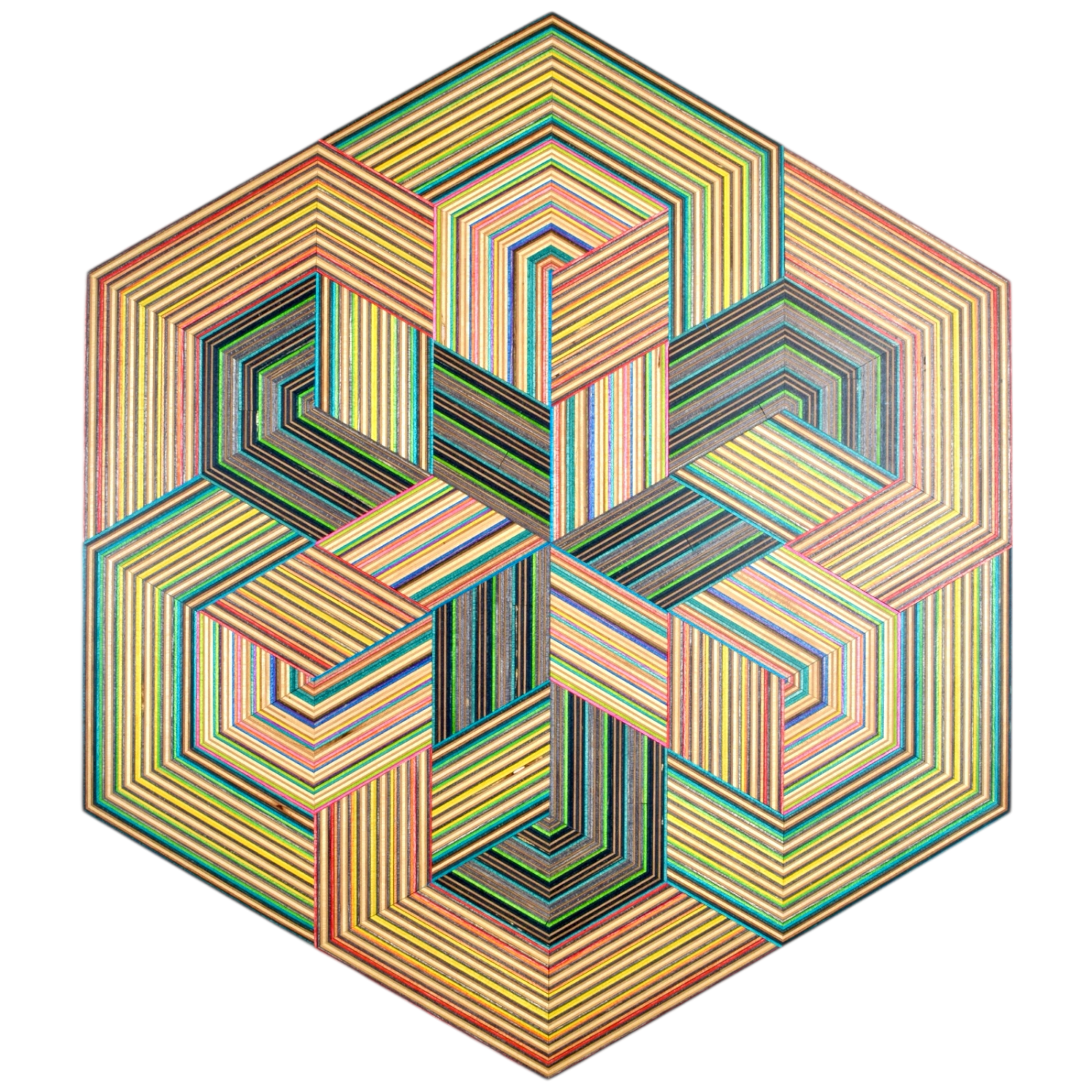 What began as an exploration of translating recycled skateboard veneers into geometric compositions quickly evolved into something much richer. Beneath the surface, we discovered an expansive visual language of rhythm, symmetry, and repetition—opening up endless possibilities.